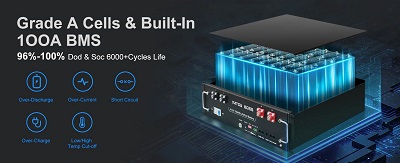 Батерията може да бъде разреждана до 100% дълбочина на разряд (DOD). Вградената BMS система ще защити батерията от прекомерно разреждане. За оптимален експлоатационен живот се препоръчва разреждане до 80% DOD