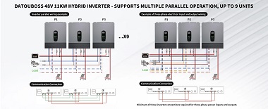 Хибридните инвертори DATOUBOSS 11 KW 48V могат да работят паралелно до 9 бр.