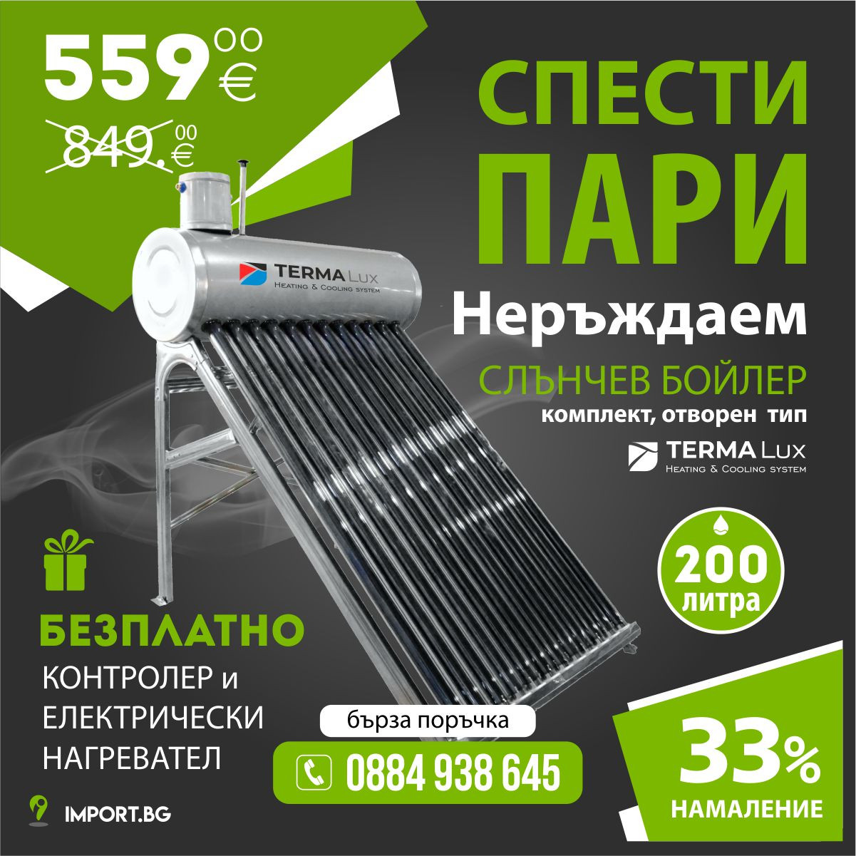 ДОПЪЛНИТЕЛНИ ХАРАКТЕРИСТИКИ НА НЕРЪЖДАЕМ СОЛАРЕН БОЙЛЕР TERMALUX 200 ЛИТРА